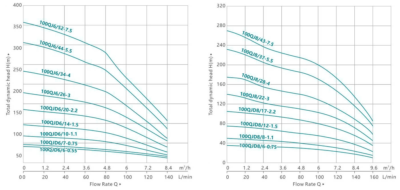 | / | 100QJ6/52-7,5 | 7.5 | 10 | 359 | 348 | 328 | 302 | 281 | 218 | 166 | 104 | |