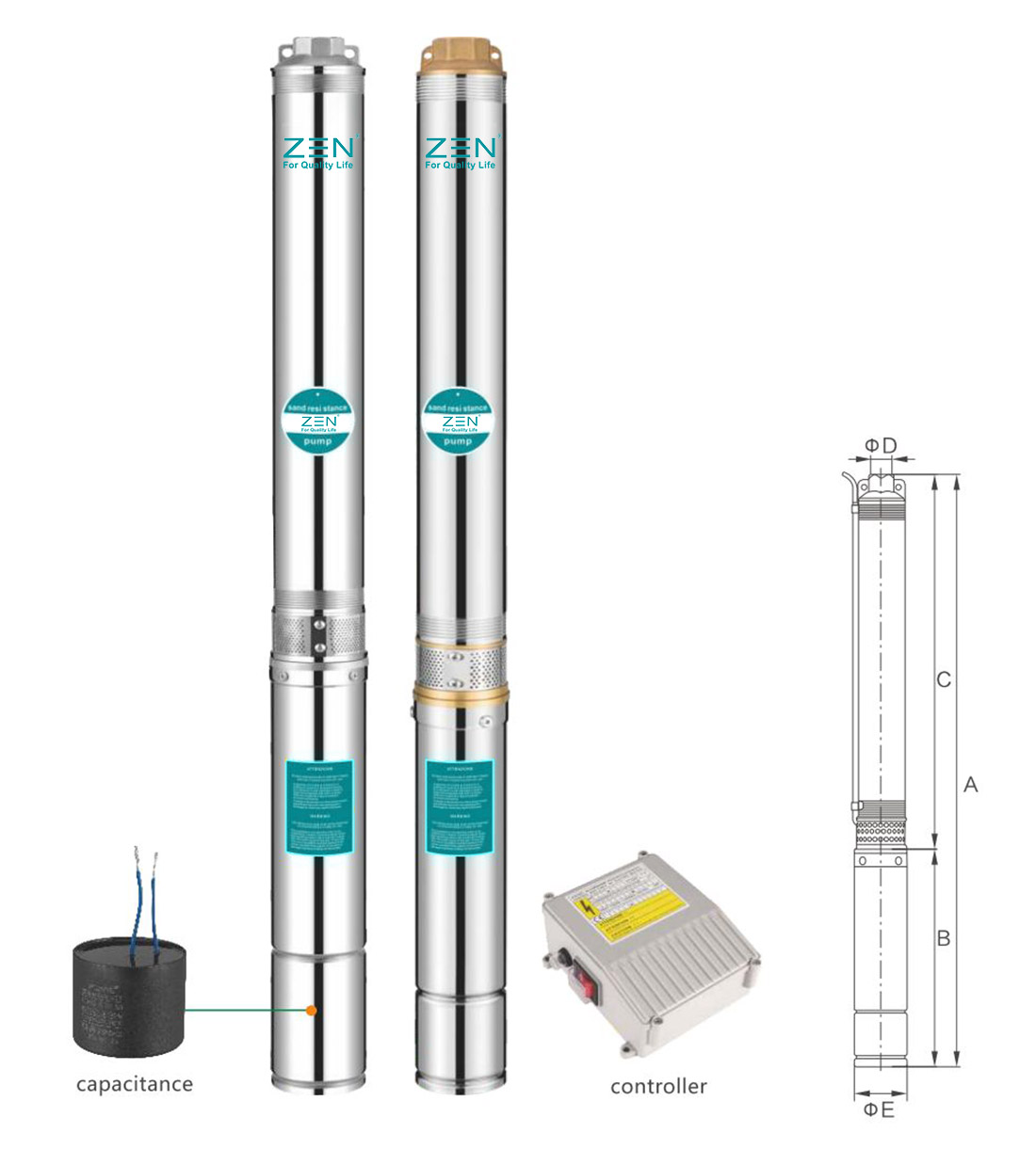 A bomba para poços profundos em aço inoxidável ZΞN 2.5SDM apresenta durabilidade, estrutura robusta e componentes de alto desempenho.