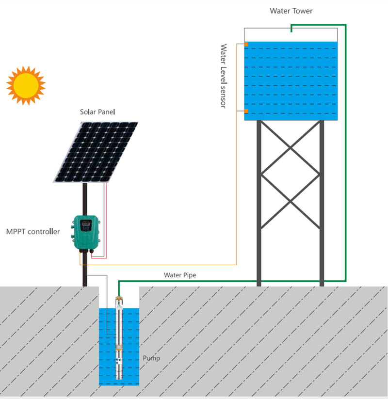 Instalação e usoA instalação geral de bombas solares consiste principalmente em painéis solares, caixas de controle e bombas. Bombas de superfície ensolarada são usadas para aumentar a pressão da água. A bomba de poço profundo SSD-A/D AC/DC personalizada da ZEN Machinery permite que você forneça água em uma faixa mais alta e ampla. Nas regiões solares do mundo, especialmente em áreas remotas onde não há eletricidade, o uso de energia solar é o método mais atraente de abastecimento de água.