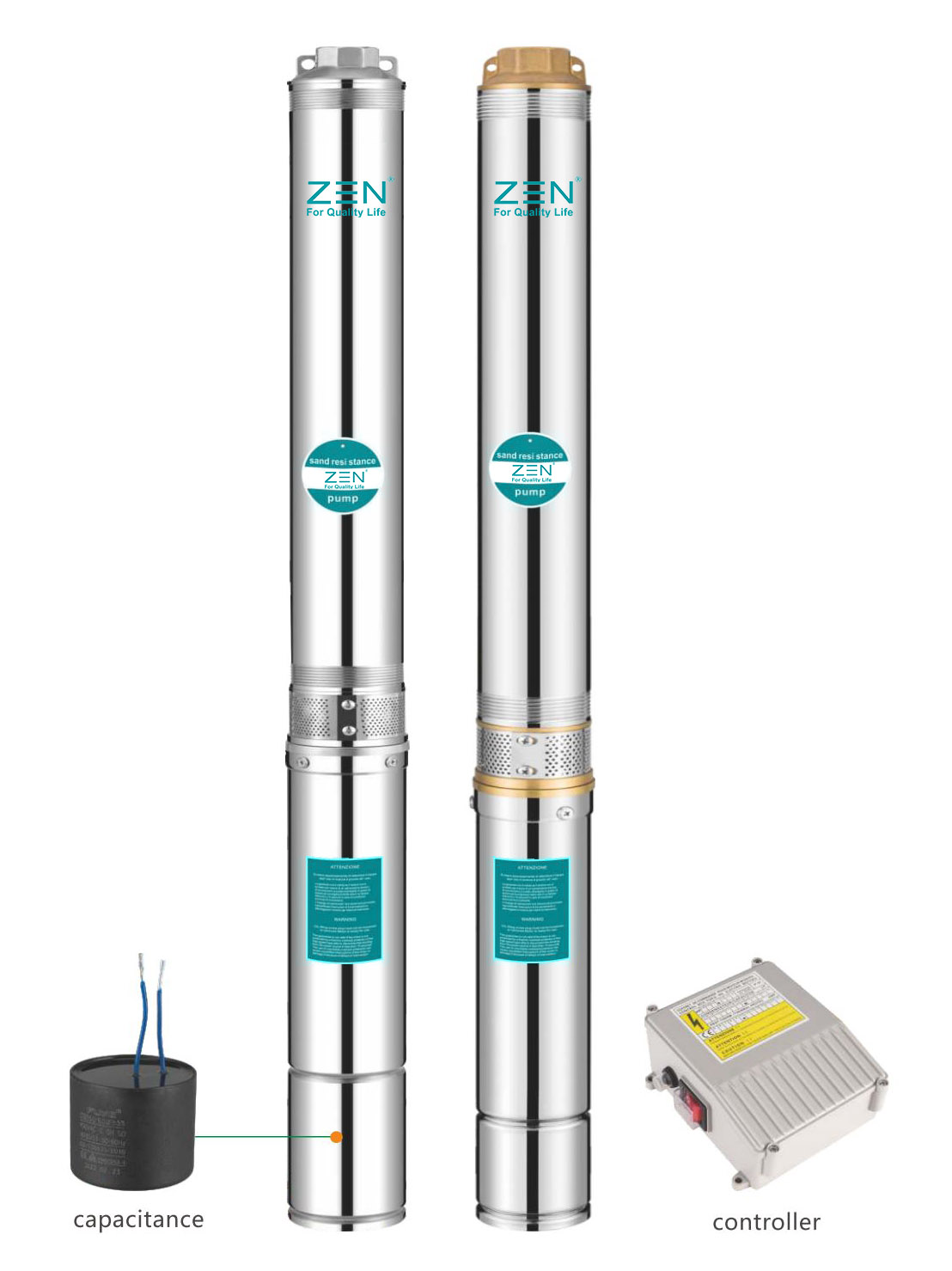 Bomba de poço profundo de aço inoxidável ZEN 3.5SDM da marca Feitas de aço inoxidável, as bombas de qualidade são projetadas para fornecer alta vazão e excelente pressão de água, garantindo um abastecimento de água estável e confiável. Identificador* 3,5 SD*3,5: diâmetro do furo: 90 mm (3,5")* SD: bombas submarinas da série SD* M: motor monofásico (trifásico sem M)*1: Capacidade (m3/h)* 9: Cena* 0,25: Potência do motor (KW)