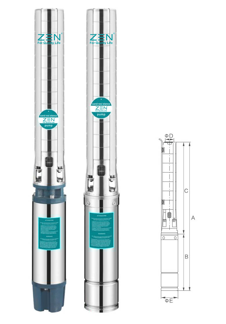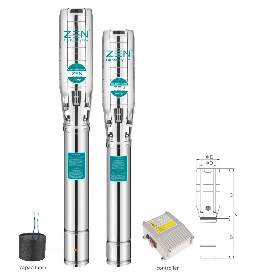 Se você procura um abastecimento de água confiável para sua casa, irrigação agrícola ou aplicações industriais, a bomba submersível 6SP17 para poços profundos da marca zen é a solução perfeita. Identificador*6SP*6: Diâmetro do furo: 148 mm (6")*SP: aço inoxidável* 17: Capacidade (m³/h)* 05: Cena* 3.0: Potência do motor (KW)