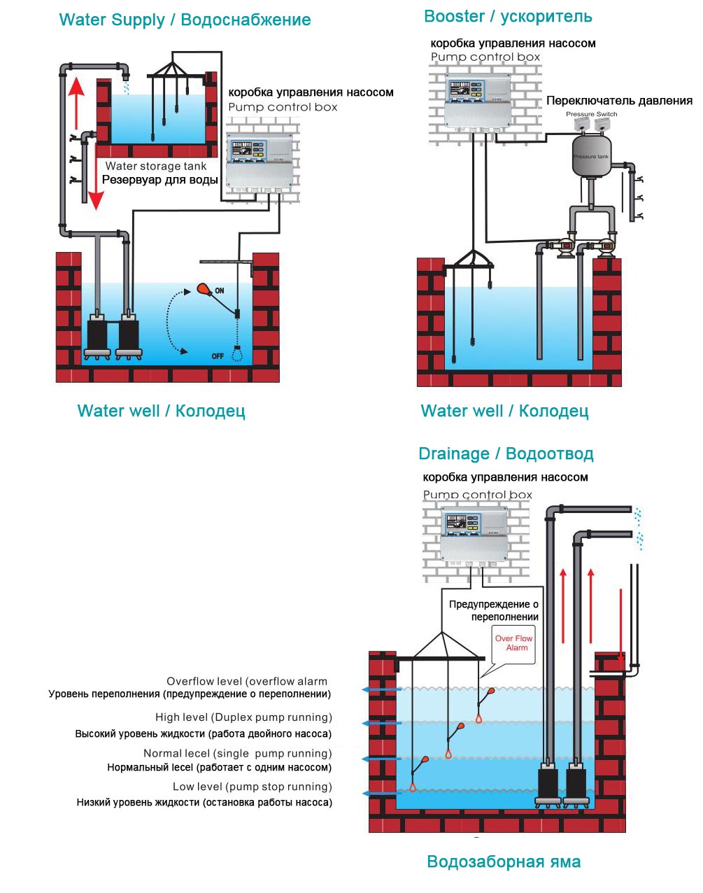 Controlador de bomba duplex C-T2 de alta qualidade da ZEN Machinery: sensor de nível, manômetro remoto (exibição de profundidade do líquido em tempo real); display LCD dinâmico de funções em inglês.