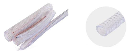 A mangueira reforçada com fio de aço de PVC é um tubo flexível usado para transportar água de uma fonte de água para vários objetos. É uma ferramenta essencial para regar plantas, lavar carros, limpar espaços exteriores e muitas outras tarefas interiores e exteriores. As mangueiras de água são geralmente feitas de materiais duráveis, como borracha, PVC ou poliuretano, o que lhes permite suportar alta pressão de água e uso frequente.