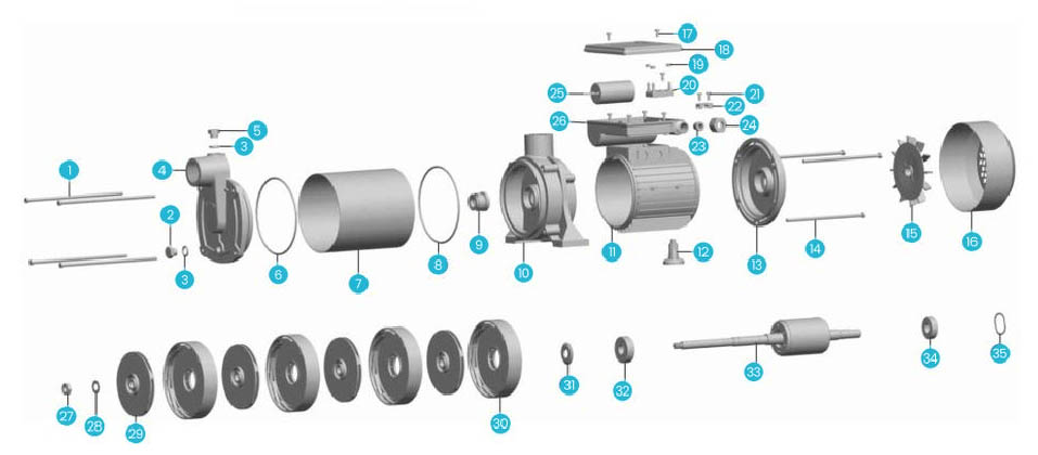 | 9 | Selo mecânico | 21 | Selo mecânico | 33 | Rotor | ||||||