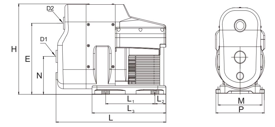 | Modelo | D1 | D2 | N | E | L1 | L2 | L3 | L | H | M | P | GW(kg) |
