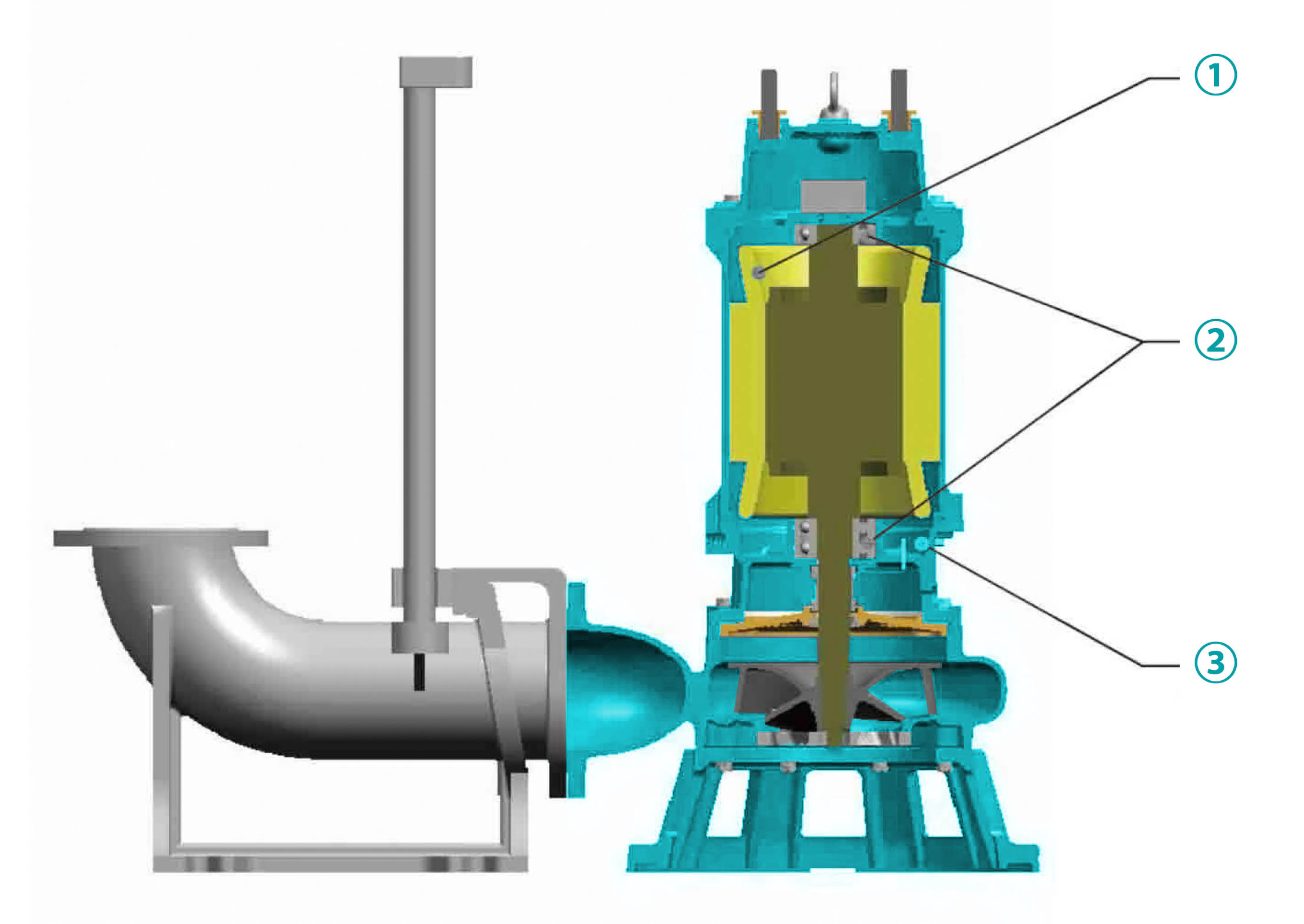 MS é um sensor de eletrodo para fornecer água à câmara. Se for detectado um vazamento, apoiar-se no interruptor (na caixa de controle) cortará a energia da bomba. (MS é um componente comum de bombas de 15 HP e superiores). Desta forma, vedações mecânicas e lubrificantes danificados podem ser substituídos antes que ocorra um vazamento na carcaça do motor. (MS é um componente comum de bombas de 15 HP e superiores).