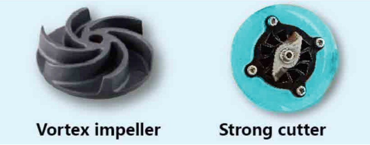 Características 1. Rotores semiabertos tipo Vortex, permitindo a passagem de grandes dimensões físicas. 2. Material da faca e do anel: aço inoxidável 420 com alto cromo, dureza HRC49 - 52, boa resistência ao desgaste. |