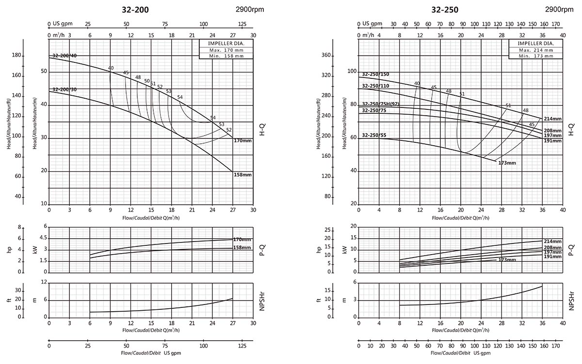 | XA32-250/55 | 50x32 | 208 | 5.5 | 7.5 | 60 | 59.5 | 59 | 55 | 50.2 | 34.5 | - | - | - | - | - | - | - | - | - | - | - | - | - |