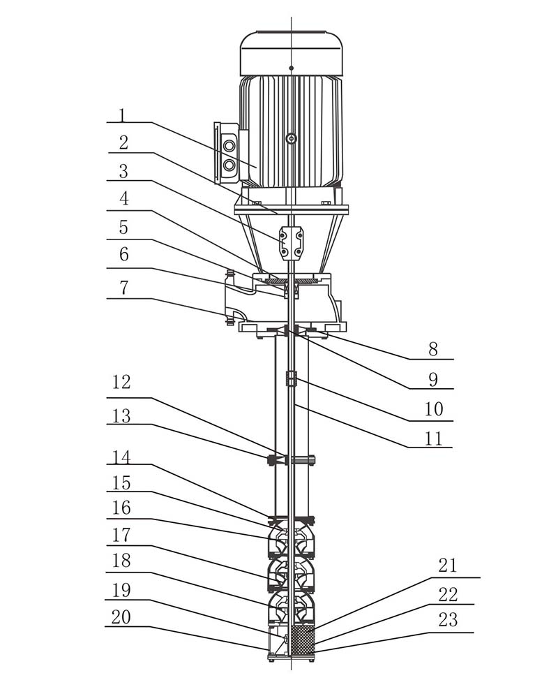 A seção de abastecimento de água é conectada por um flange e o material do eixo de transmissão é 2Cr13 ou aço inoxidável.